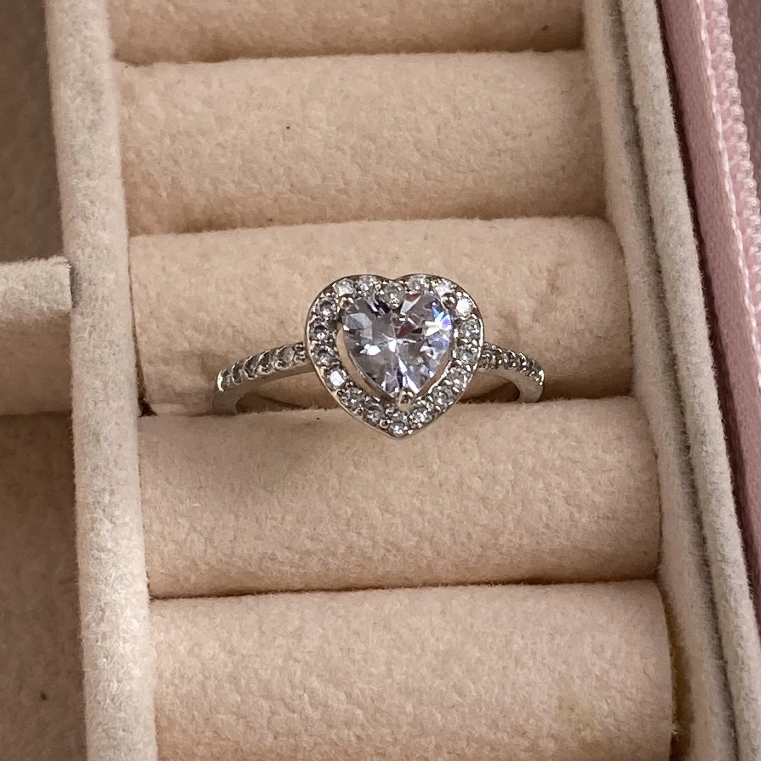 Diamond Cut Silver Plated Zircon Heart Ring.